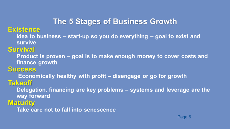 In the late 80s at Harvard, they did a study on business growth and found business goes through 5 stages.