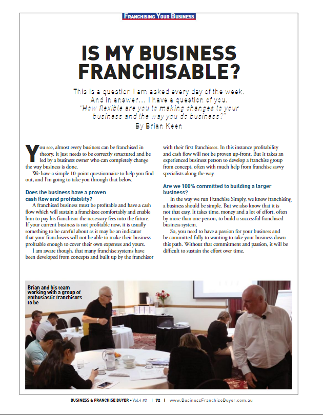 A franchised business must be profitable and have a cash flow which will sustain a franchisee comfortably and enable him to pay his franchisor the necessary fees into the future. If your current business is not profitable now, it is usually something to be careful about as it may be an indicator that your franchisees will not be able to make their business profitable enough to cover their own expenses and yours.